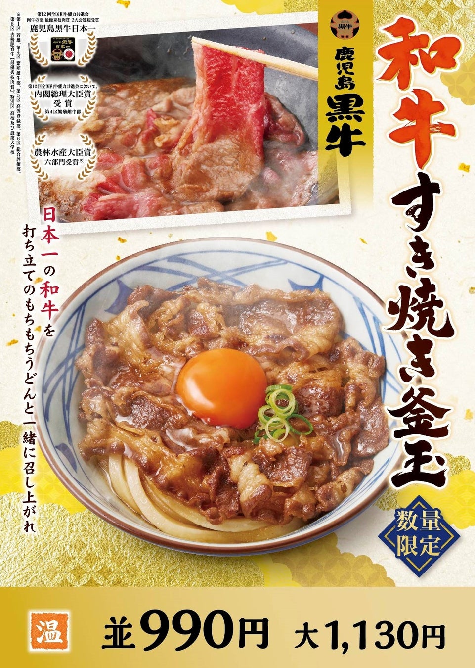丸亀製麺の“ひと手間かけた冬のうまい!” シリーズ第2弾が登場 日本一の鹿児島黒牛をつかった、年の瀬“ご褒美うどん”肉の旨みと甘みが絶妙な『和牛すき焼き釜玉うどん』