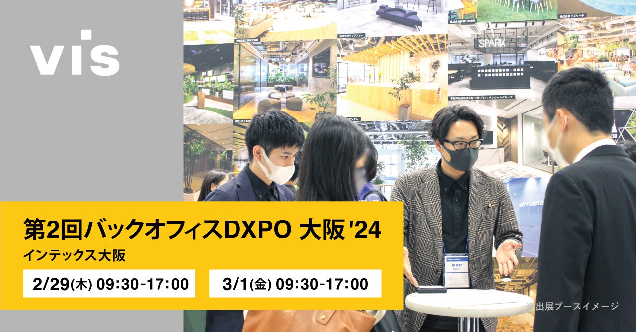 ワークデザインを手がける株式会社ヴィス(本社:大阪市北区、代表取締役社長:金谷智浩)は、2024年2月29日(木)、3月1日(金)にインテックス大阪(大阪市住之江区)にて開催される「第2回バックオフィスDXPO(ディーエクスポ) 大阪′24」に出展することをお知らせします。
