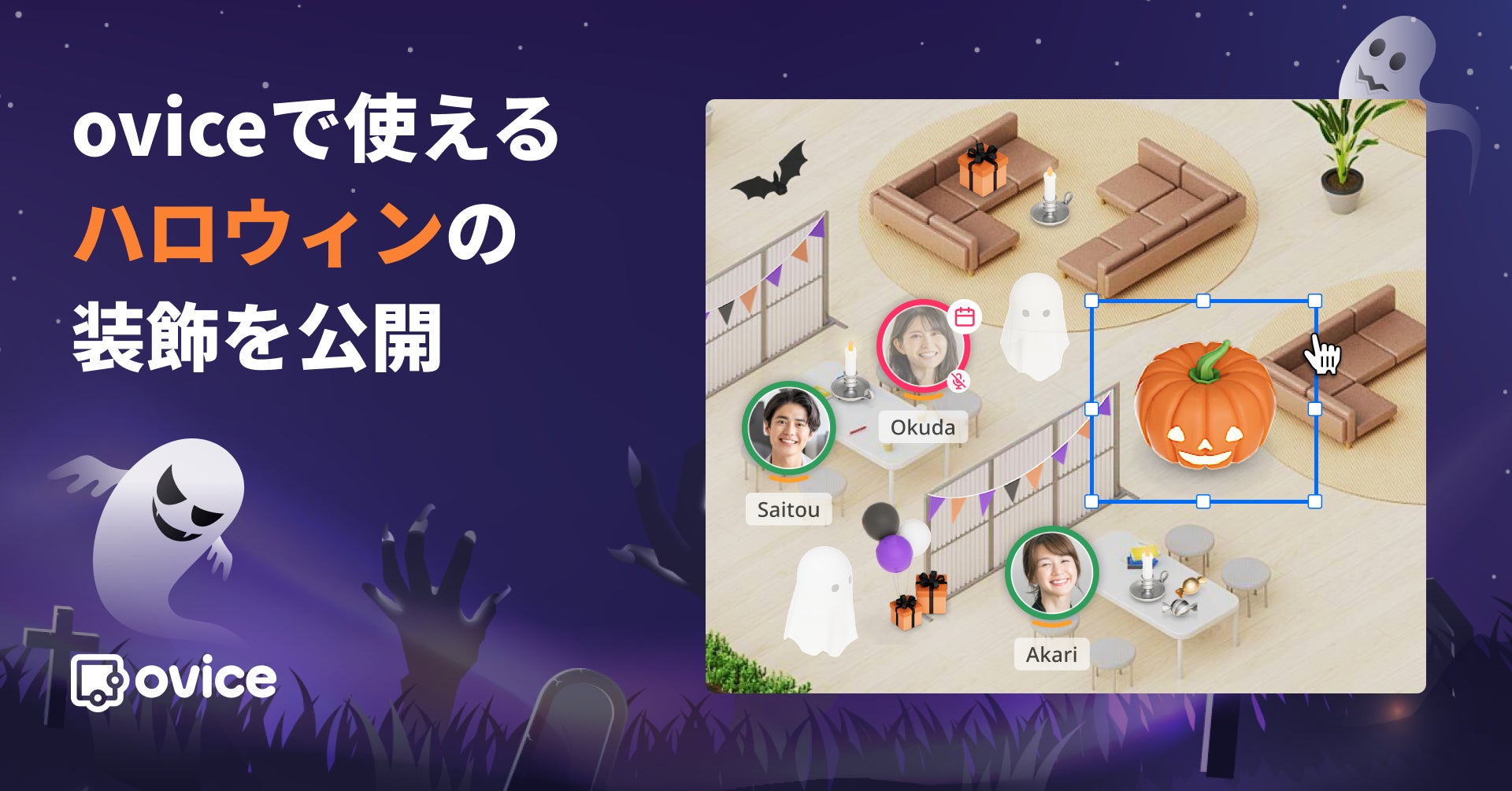 oviceは2020年8月のサービスリリース以降、多くの企業のオフィスとして利用されています。イベントに合わせてoviceを装飾されている方も多いことから、今回oviceに簡単にハロウィンのデコレーションができる装飾アイテムを公開しました。
