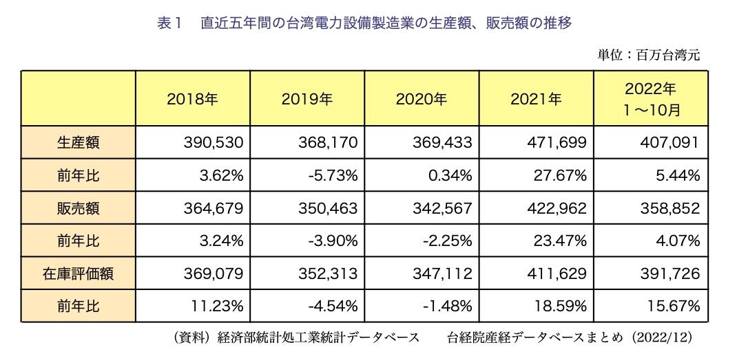- 台湾電力設備製造業2022年の振り返りと今後の展望
