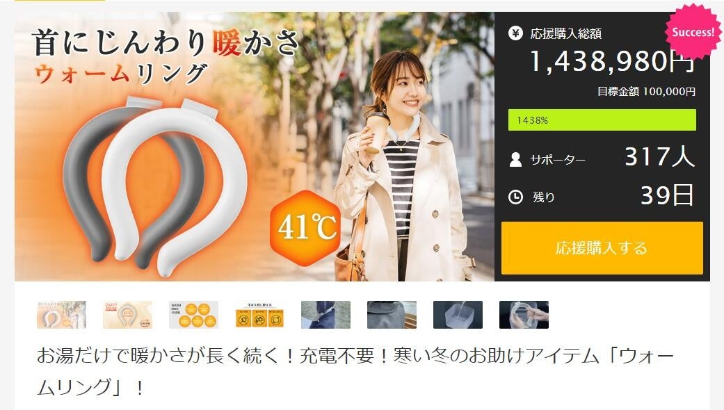 お湯だけで暖かさが長く続く!充電不要!寒い冬のお助けアイテム「ウォームリング」!