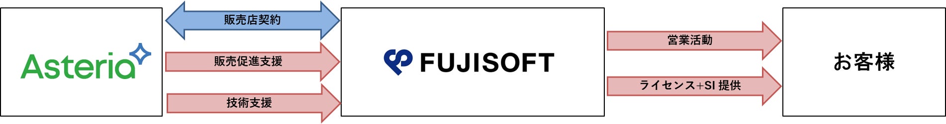 富士ソフトはWarpを活用したソリューション提案を強化するとともに、データ連携・システム統合の分野におけるサービスの高度化を実現することが可能なことから、アステリアとAMPおよび、ASPの契約を締結。これまで培ってきた提案力と開発力を活かし、データ収集から加工・連携、さらにはAI・BI※2を用いた分析までを一貫して支援するサービス体制を確立し、お客様のビジネス価値向上に、より一層貢献します。