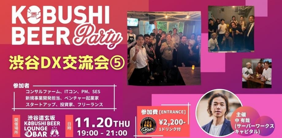 KOBUSHI MARKETING合同会社(東京都渋谷区、代表:井上裕介)が運営する渋谷道玄坂の『KOBUSHI BEER LOUNGE & BAR』では、人と人とを繋ぐユニークな取り組みを行い多くのビジネスチャンスを生み出している。そして今回、2025年11月20日(木)19:00~サーバーワークスキャピタルの中 有哉氏をゲストに迎え、DXやクライアントワークに関する情報交換などが行える交流イベントを開催すると発表した。