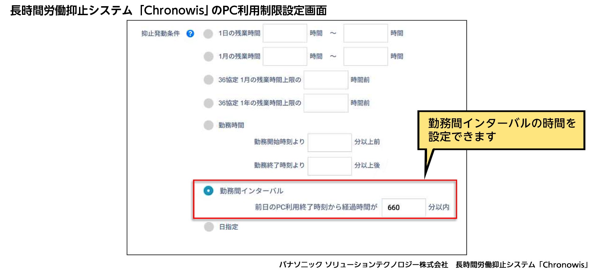 ▼【新機能詳細】長時間労働抑止システム「Chronowis」勤務間インターバル対応機能詳細