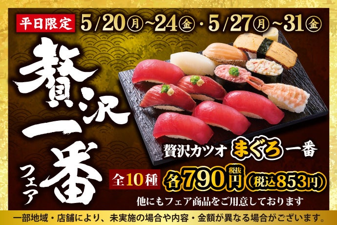 持ち帰り寿し店の「⼩僧寿し」「茶⽉」を運営する株式会社⼩僧寿しは、持ち帰り寿し店「⼩僧寿し」にて、5月20日(月)~24日(金)・27日(月)~31日(金)の期間限定で「贅沢一番フェア」を開催します。