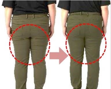 ・後ろ股上深めで座った時にウエスト位置が下がりにくい