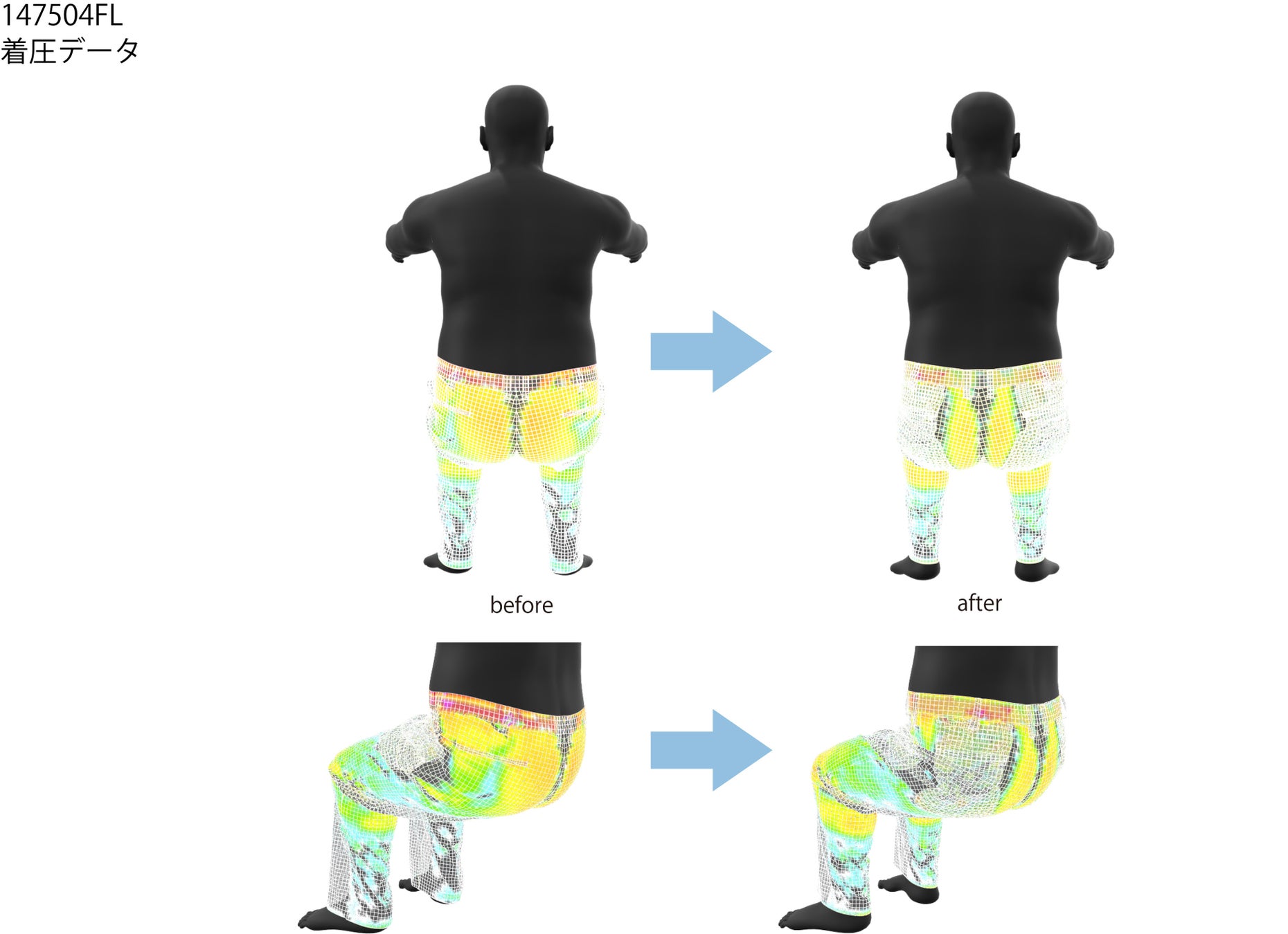 サンプル試着の際にいただいた“食い込みが気になる”という意見をもとにパターンを修正。