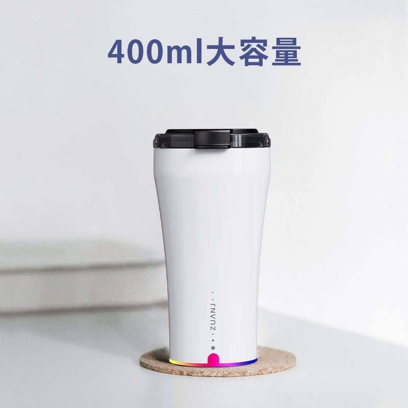 底部には温度センサーと重力センサーを搭載しており、カップを手に取るだけで温度表示が自動で点灯。3段階の温度表示で熱すぎる飲み物によるやけども防げます。