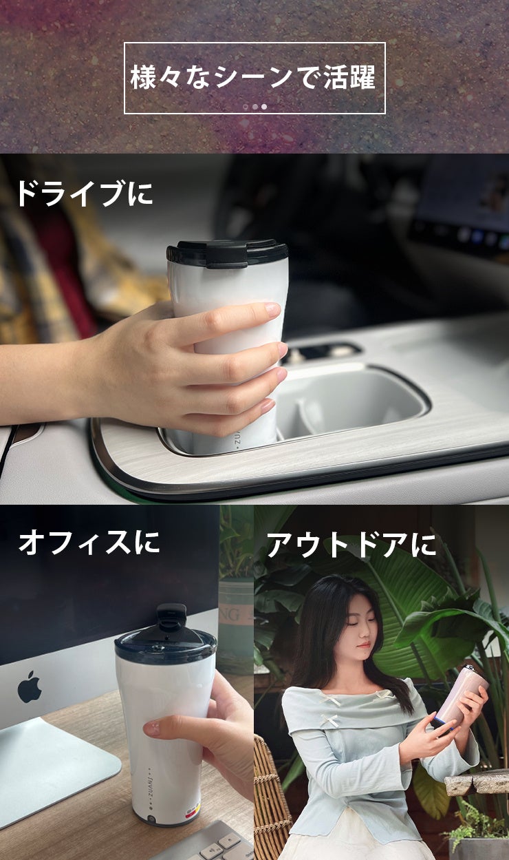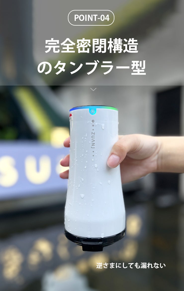 市販の従来品はマグカップ型が多い中、本製品は完全密閉のタンブラー型を採用。激しく揺らしても中身が漏れにくく、通勤・通学やアウトドアでも安心して持ち運べます。