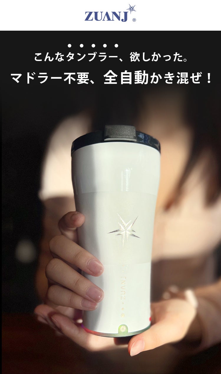 ZUANJ全自動かき混ぜるタンブラーは10月31日より、クラウドファンディングサイトCAMPFIREにて予約発売開始!https://camp-fire.jp/projects/897606/view