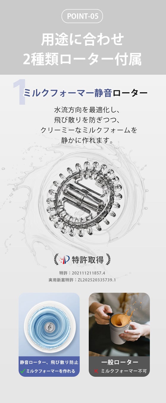 わずか20秒でムラのない均一なドリンクが完成。まるでバリスタが淹れたような、なめらかな口当たりと豊かな味わいを、どこでも手軽に楽しめます。