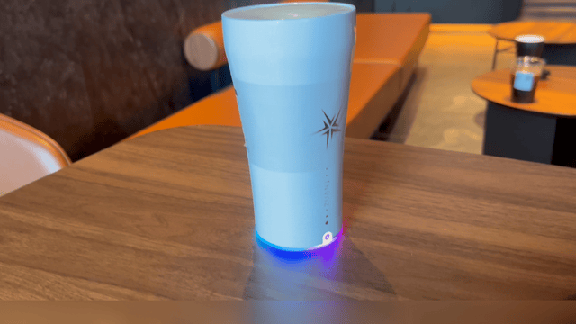 【まもなく発売開始】特許取得済み!手に取った瞬間温度表示!マドラー不要、全自動かき混ぜるタンブラー