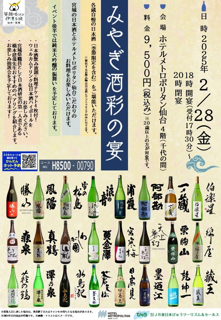 株式会社 JR 東日本びゅうツーリズム&セールス(本社所在地:東京都墨田区)は、2025年2月28日(金)に宮城県仙台市「メトロポリタン仙台」にて『みやぎ酒彩の宴』を開催し、株式会社 一ノ蔵も本イベントに参加いたします。