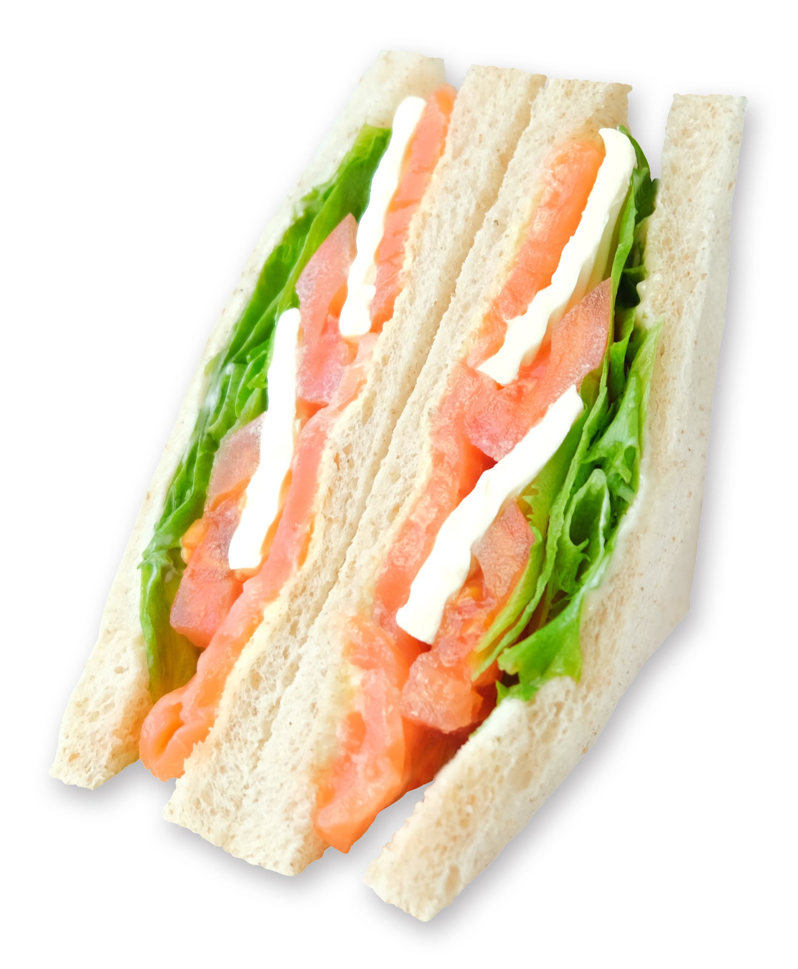 サーモン、クリームチーズ、トマトをサンドし、タルタソースで仕上げました。夕食に食べても満足感の高いサンドイッチです。