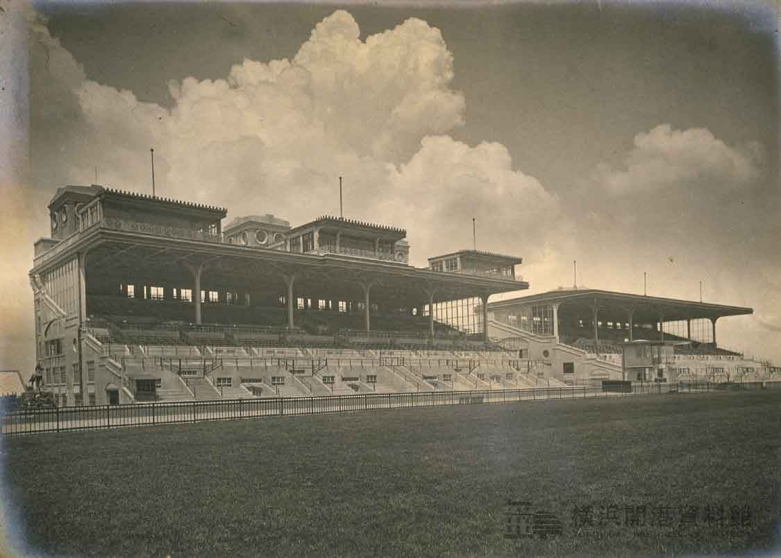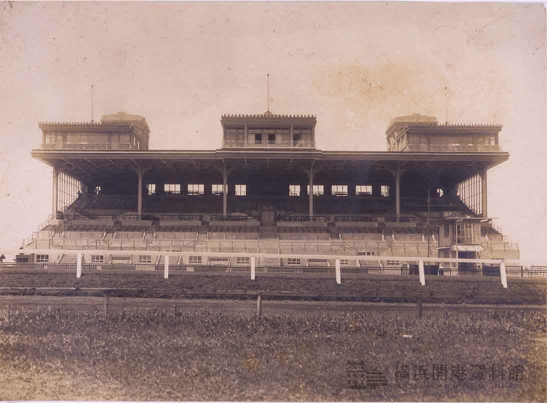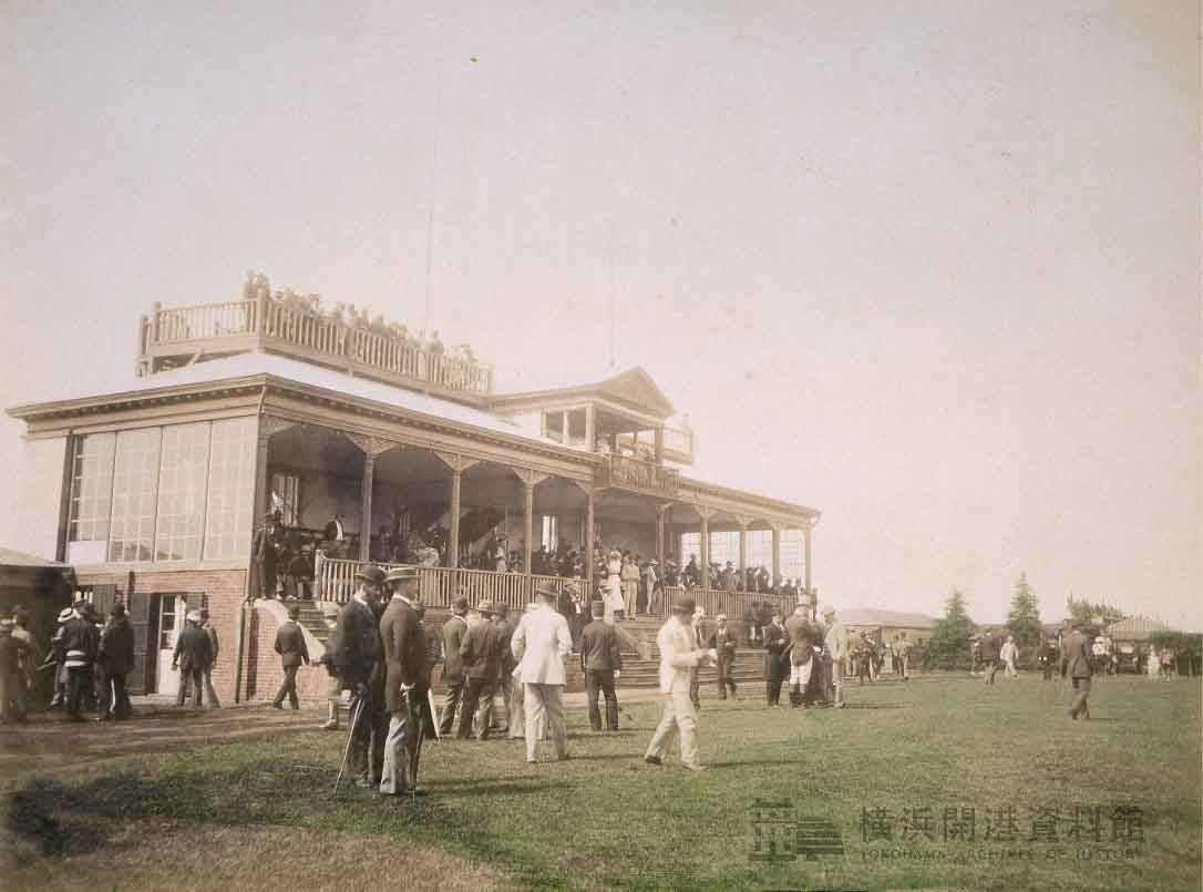 競馬は開港都市横浜に入ってきた西洋文化のひとつであり、居留外国人たちは日常のレクリエーションとして競馬や乗馬を楽しんでいました。彼らの求めに応じて、1866(慶応2)年に日本最初の近代競馬場として建設されたのが、国内初の洋式競馬場である根岸競馬場でした。
