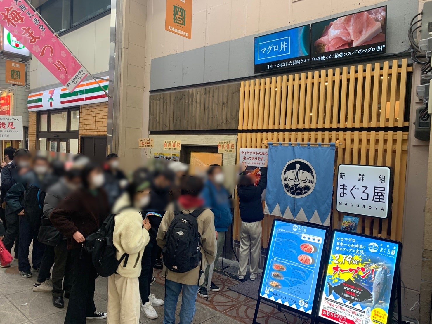 2月19日無事オープンを迎えた「新鮮組まぐろ屋」。1時間前から約20名以上の行列が出来ました。