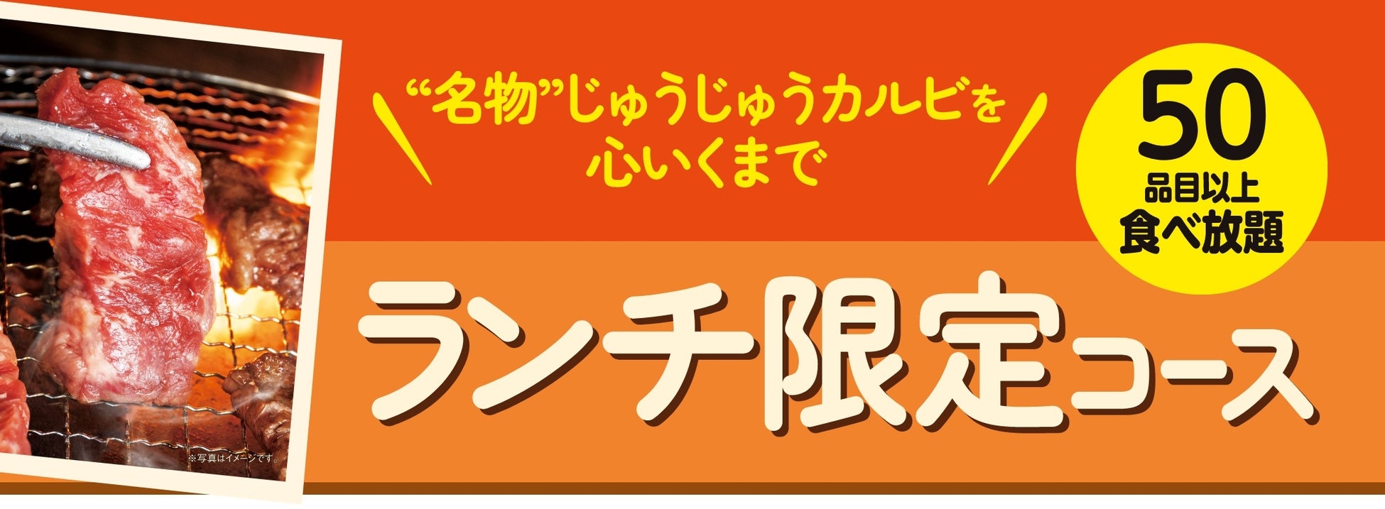 バラエティ豊富な焼肉や、サイドメニューが新登場します。またお客様からご要望の多かった、ランチタイム限定の食べ放題コースを新設いたしました。新しいメニューに変わったじゅうじゅうカルビへ、是非お越しください。