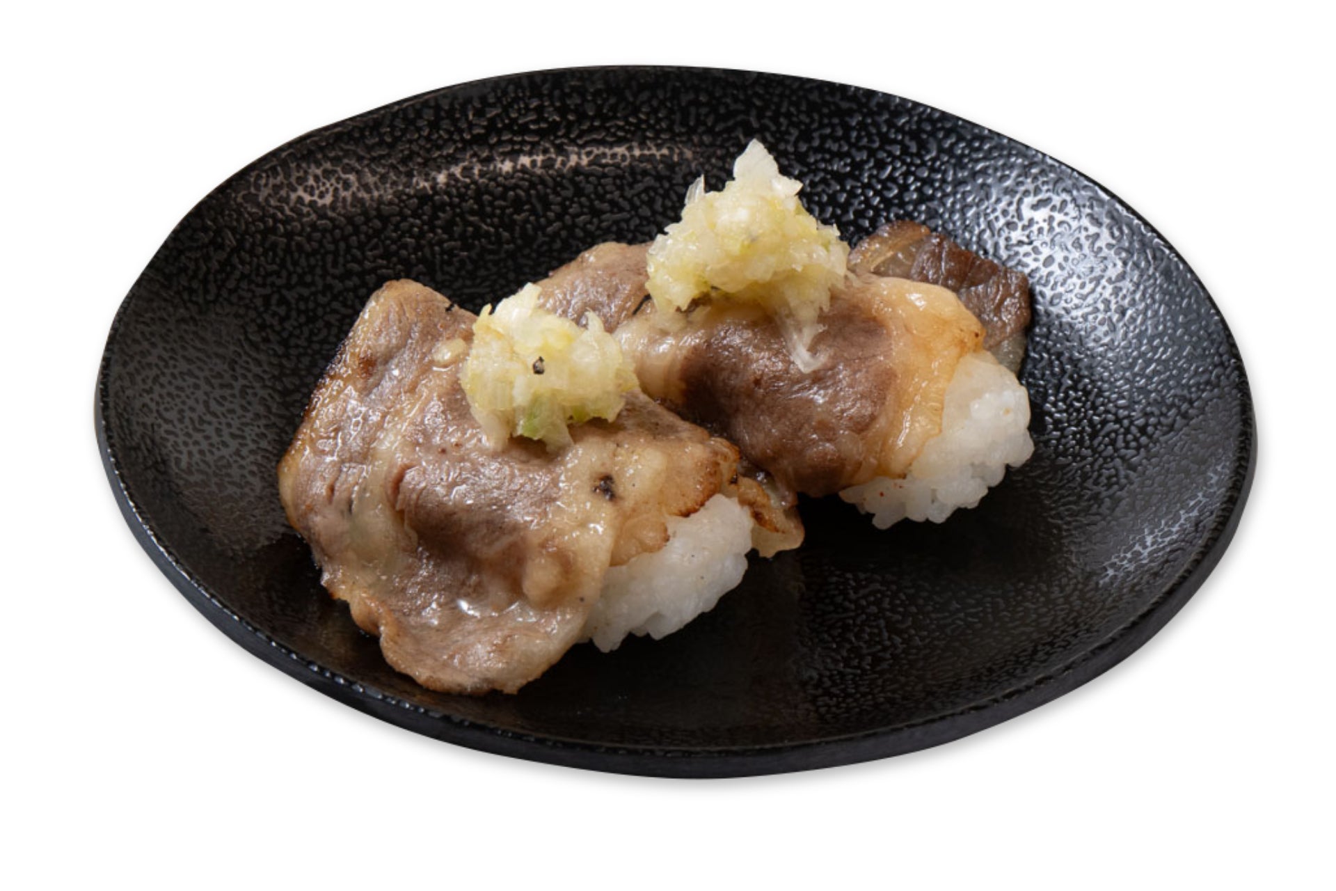 自分だけの特製肉寿司が作れます。お肉をよく焼いてから乗せてお召し上がりください。