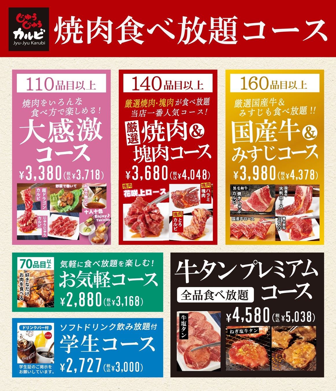 じゅうじゅうカルビの食べ放題コースをリニューアルしました。
