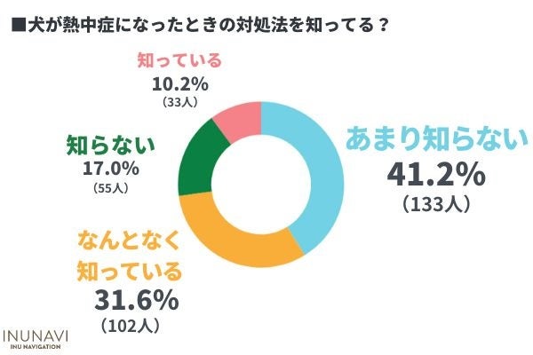 ・犬の熱中症の対処法を知っている飼い主は10.2%と少なく、多くの飼い主は対処法を知らなかった。