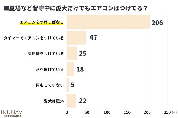 熱中症は人間だけでなく犬にも起こる病気です。愛犬の暑さ対策にエアコンを使用している飼い主は161人と最多でしたが、留守中に愛犬だけで停電が起きた場合の対策は8割以上がしていないという結果に。