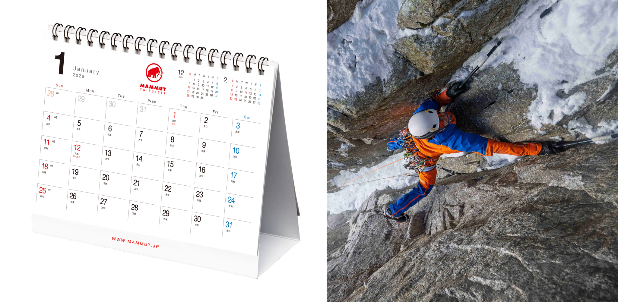 マムート・オリジナルカレンダー2026がもらえる「カレンダーキャンペーン」を12月5日より開催。マムートがサポートするアウトドア・アクティビティをまとめたカレンダーで雄大な景色をお楽しみください!