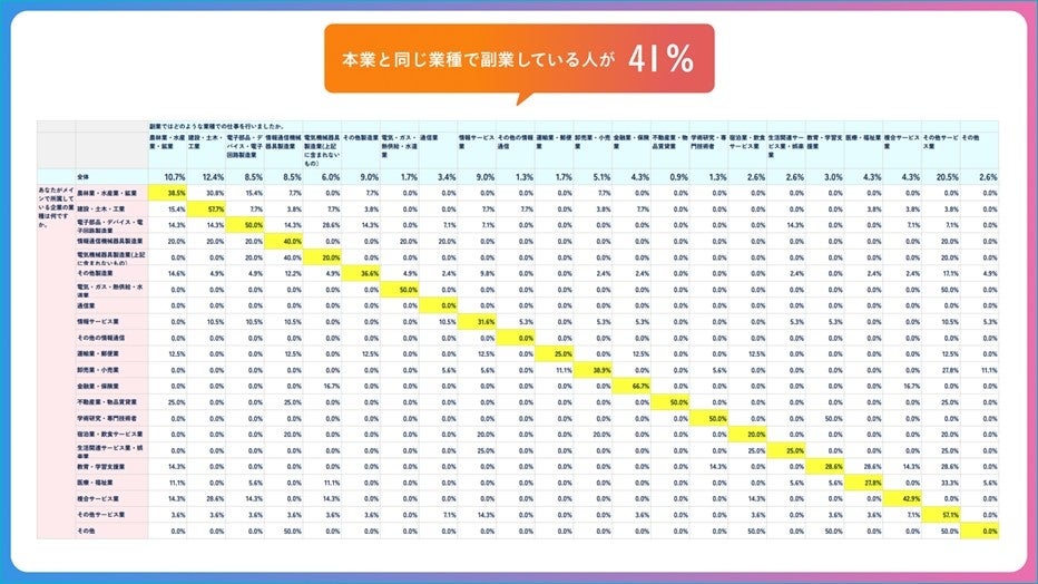 ・副業業種は、現業種と同じ業種を選ぶ人が41.0%