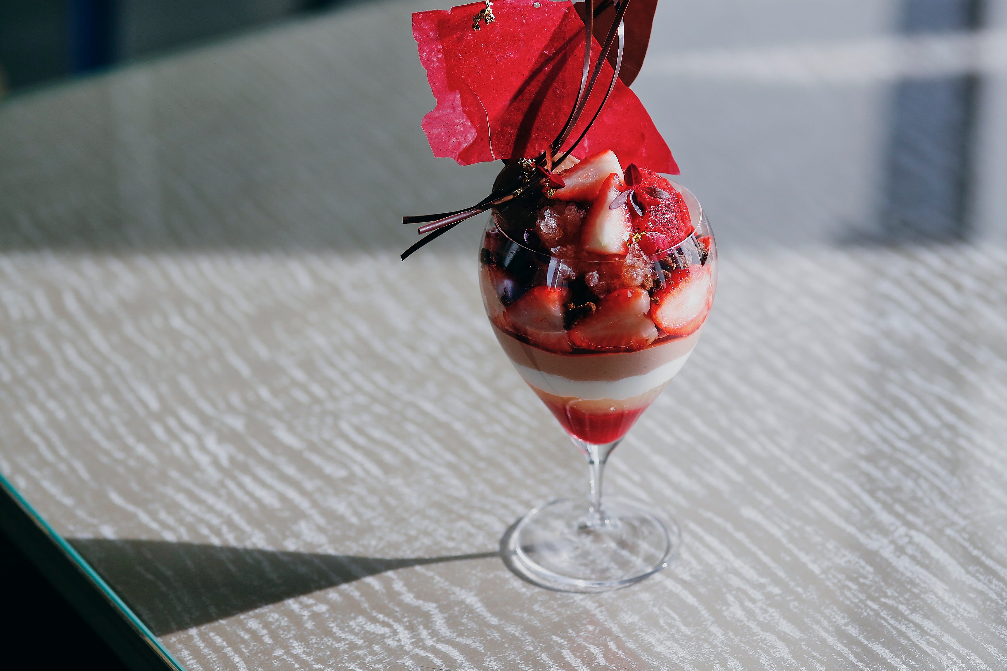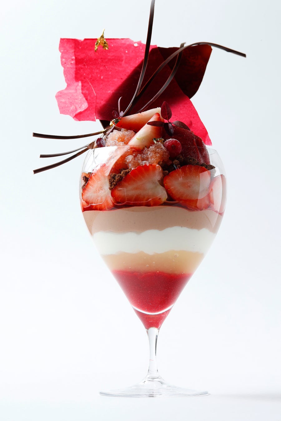 【エンポリオ アルマーニ カフェ】 2 月のパフェ「チョコレート、赤パプリカ、ベリーのパフェ」がスタート!