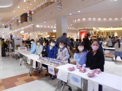 当日アリオ橋本には保護者をはじめ多くの方が商品を求め、駆けつけてくれました。売りたい商品を持って大きな声で宣伝する子、預かったお金を慎重に担任に渡す子、あまりにも多く売れてしまい午前にはなくなってしまった鬼のお面を「学校に戻って追加を作ろう!」と言い出す子など、子どもたちの「フェアを成功させたい!」という思いで会場は熱気にあふれていました。