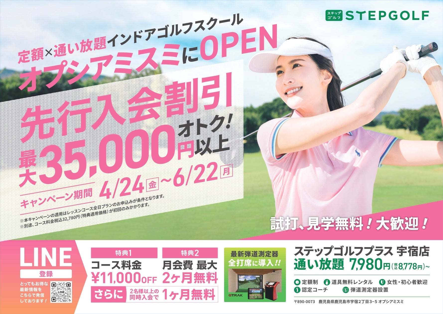 累計会員数・打席数ともに世界最大級のインドアゴルフスクール「STEPGOLF」鹿児島県では初出店となる『ステップゴルフプラス宇宿店』が今夏グランドオープン予定!
