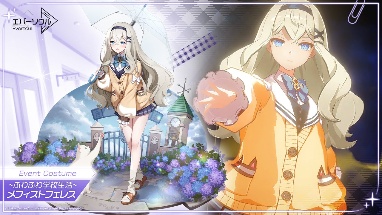 株式会社カカオゲームズは、2024年10月2日(水)に美しき精霊育成オートバトルRPG『エバーソウル』で新規精霊「マノン」の実装や、「メフィストフェレス・クレール・リンジー」精霊3体の限定制服コスチュームが手に入るが手に入る「エバースクール」イベントを開始しました。さらに、この「エバースクール」に合わせて「ピックアップ召喚:メフィストフェレス」も本日より期間限定で開始しました。