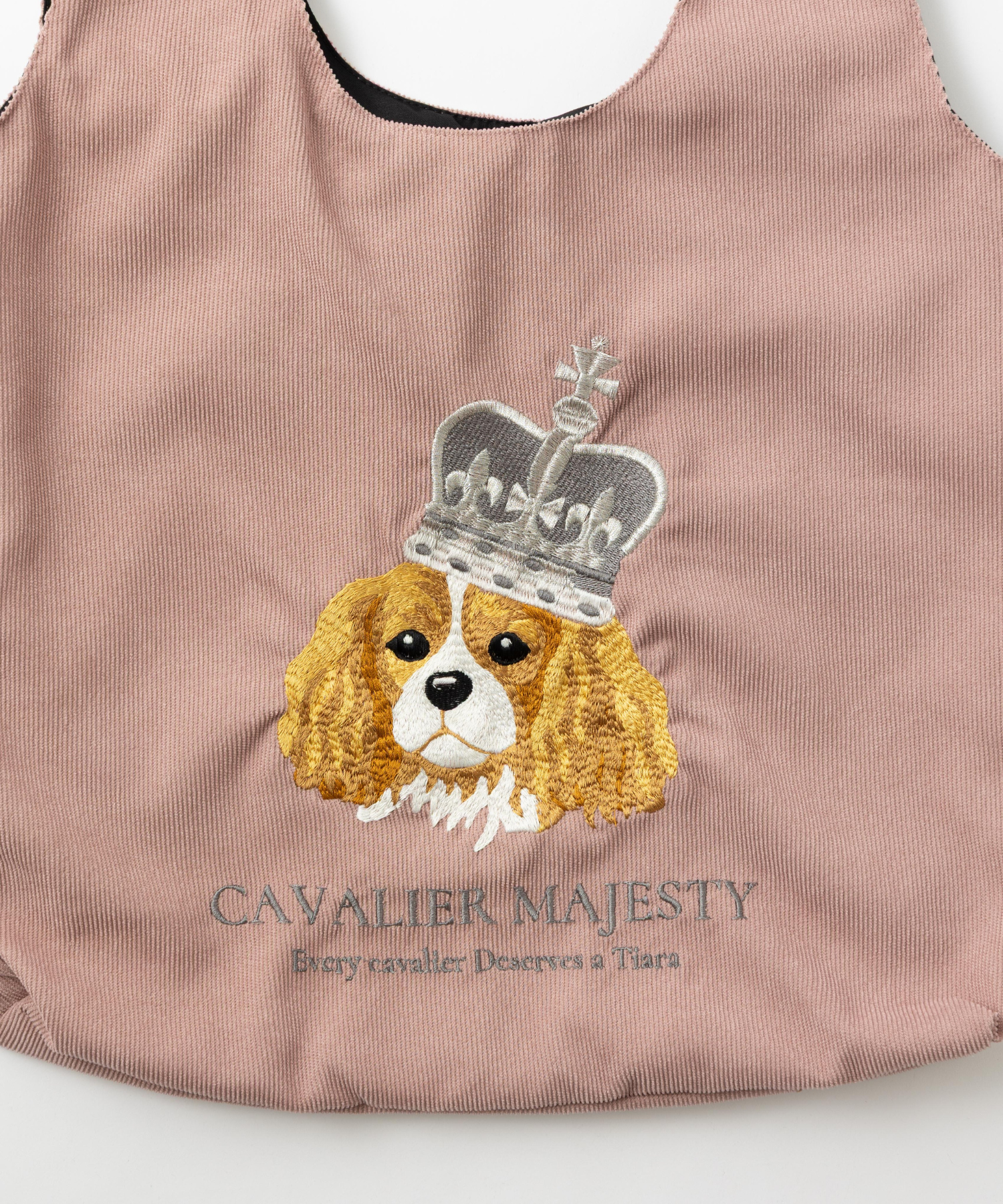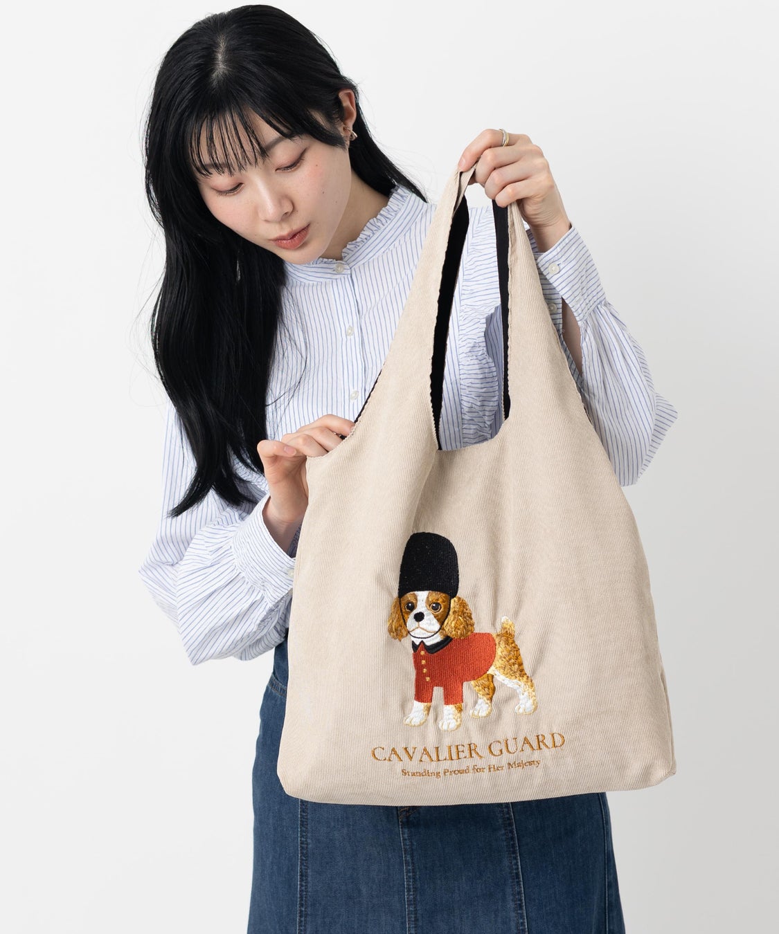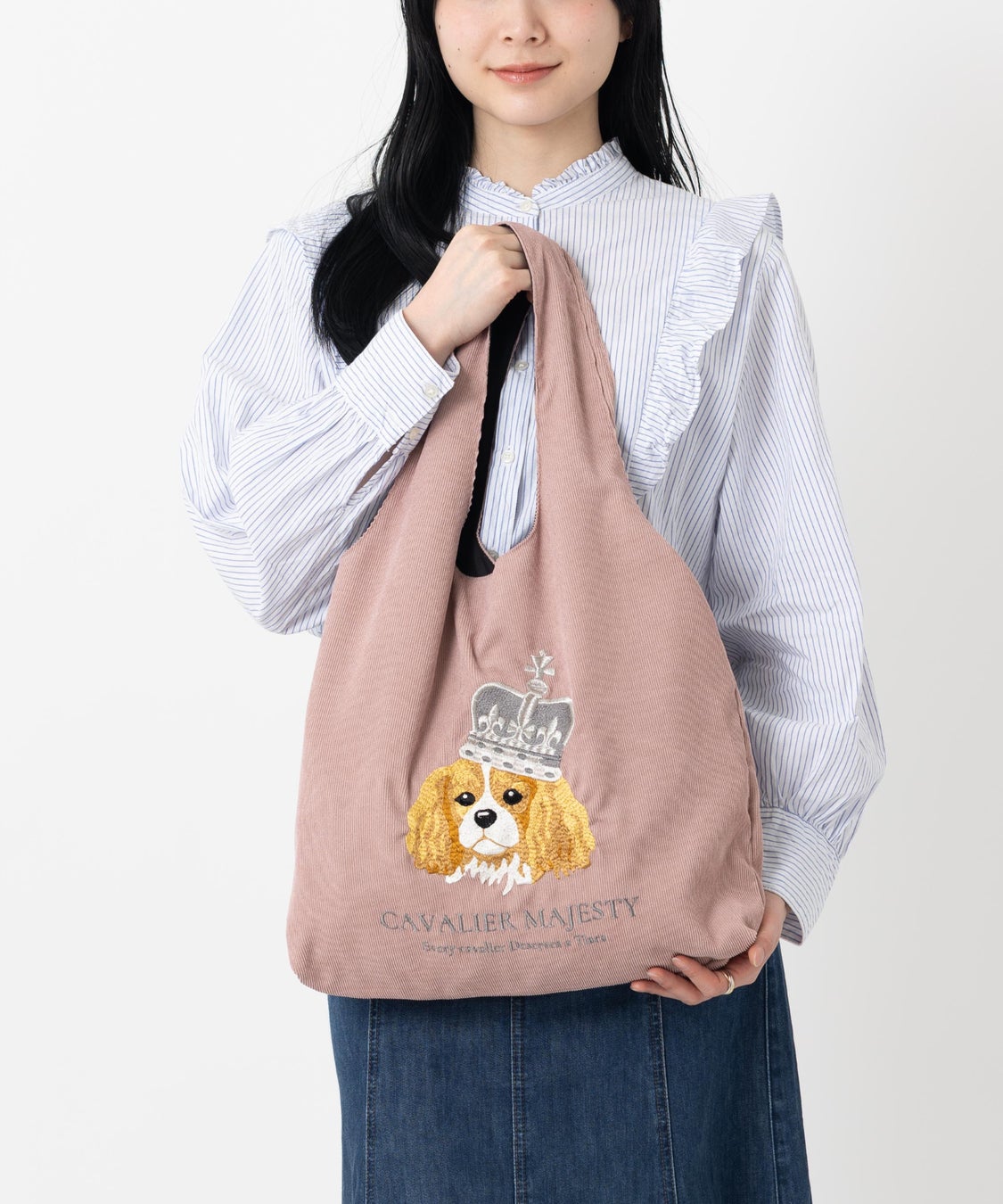 気品と遊び心が共存するデザインの立体刺繍コーデュロイトートバッグ。