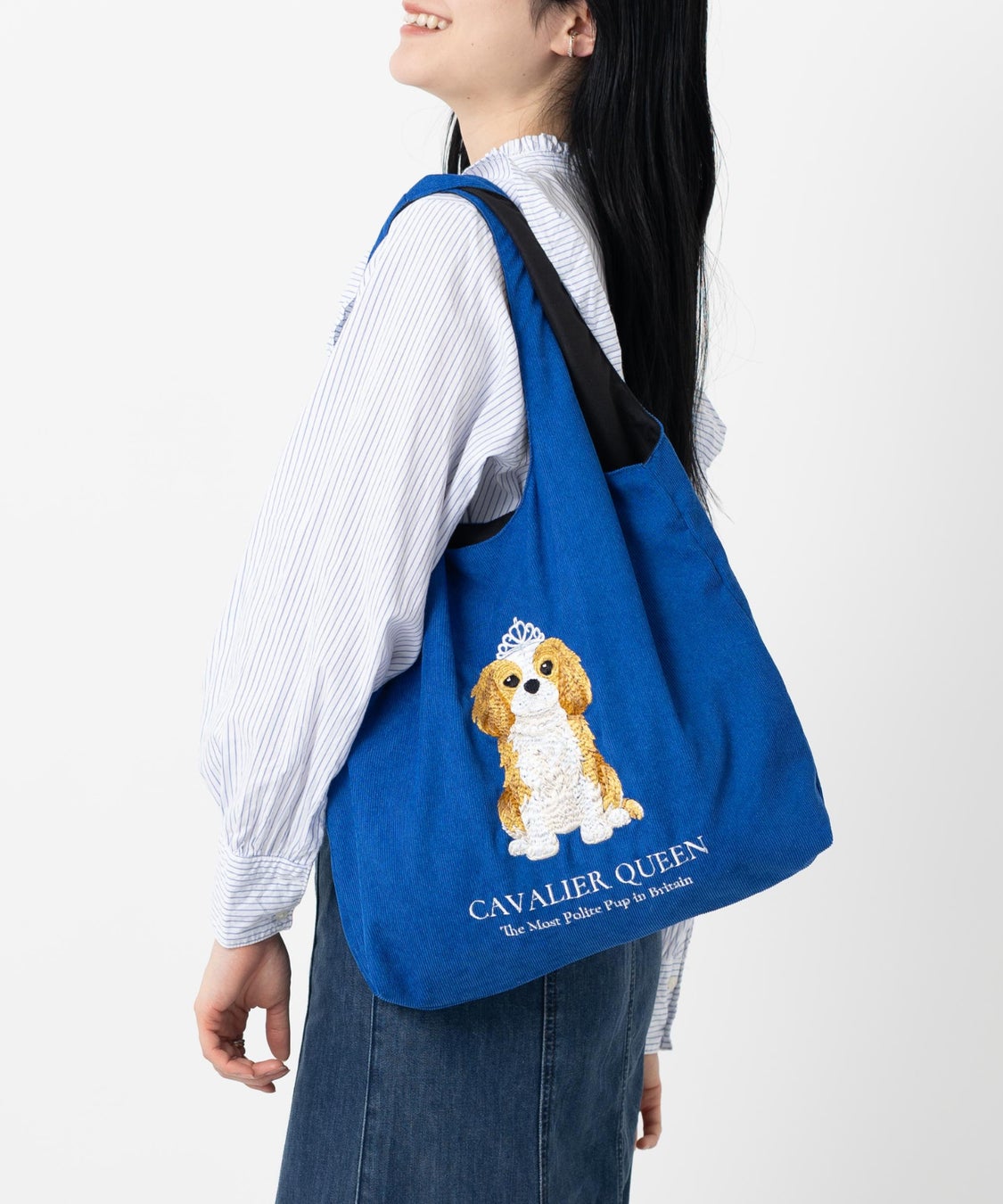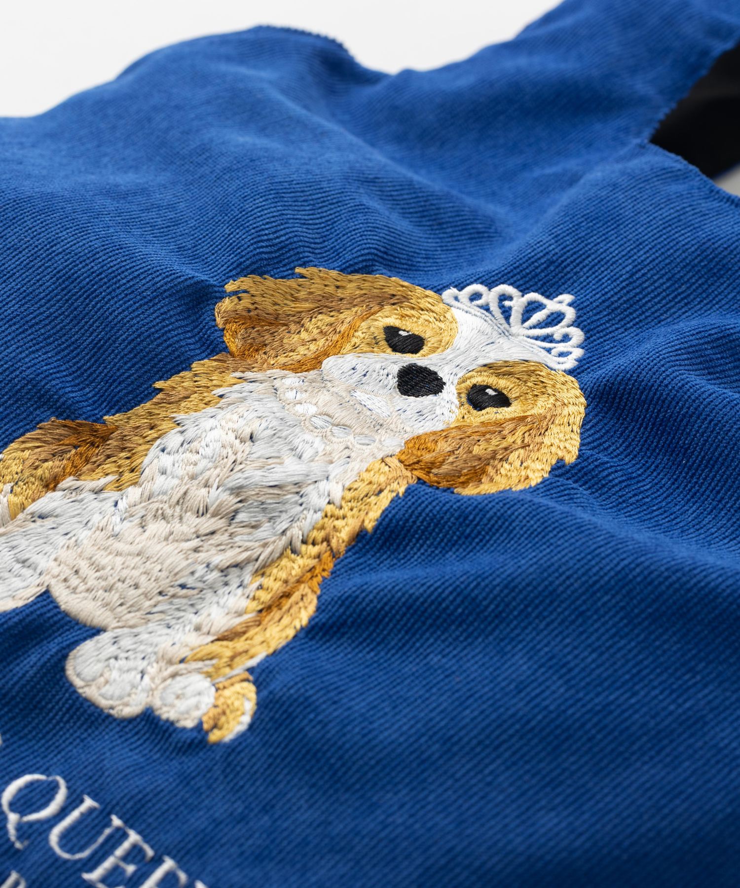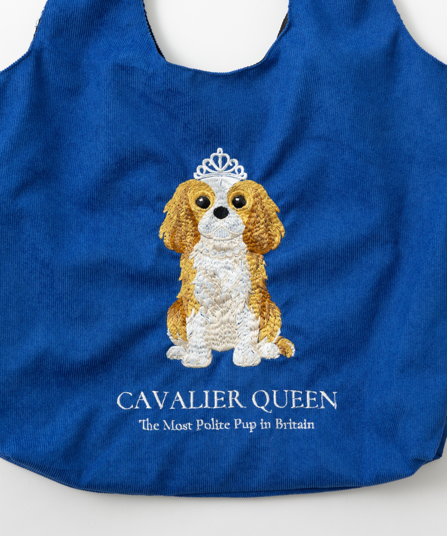 気品と遊び心が共存するデザインの立体刺繍コーデュロイトートバッグ。