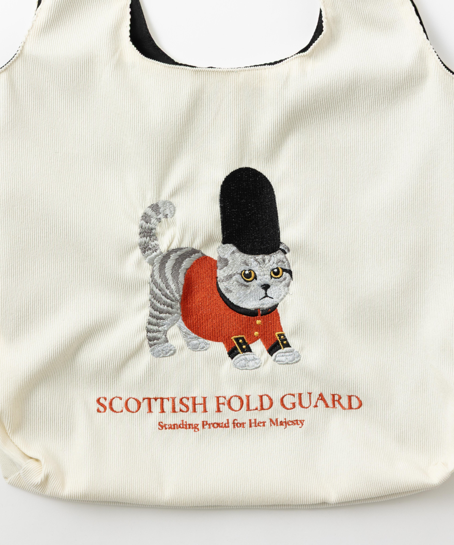 英国 猫犬デザイン刺繍 コーデュロイトートバッグ