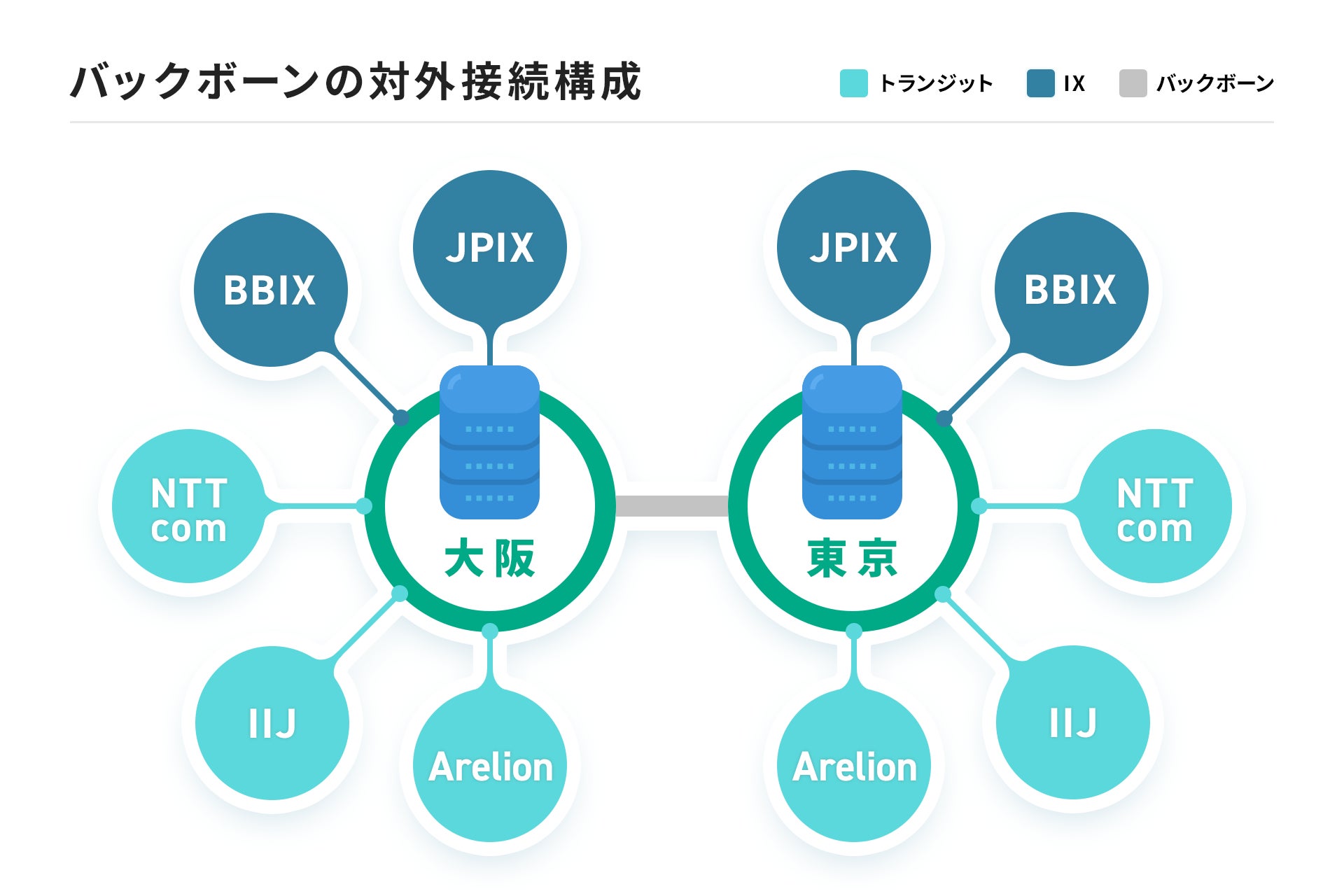 このたび当社では、バックボーンネットワークの対外接続の強化により、対外接続容量が1Tbpsを突破しました。トラフィック増加や高負荷時でも、より安定したサービスが維持できるようになっております。また、検索エンジンの評価が向上し、SEO対策へ寄与することも期待できます。