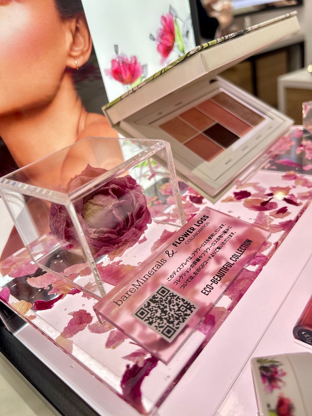 全国のベアミネラル カウンターにて、フラワーロスを使った ディスプレイを展開