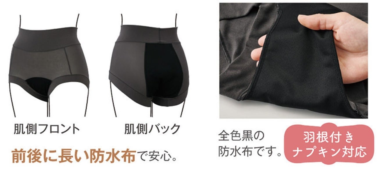 女性ならではのブルーデイを少しでも快適に過ごしてほしいから、はくことが楽しみになるくらいの気持ち良さと、漏れへの安心感が両立できるように、素材や仕様にこだわり開発した商品です。