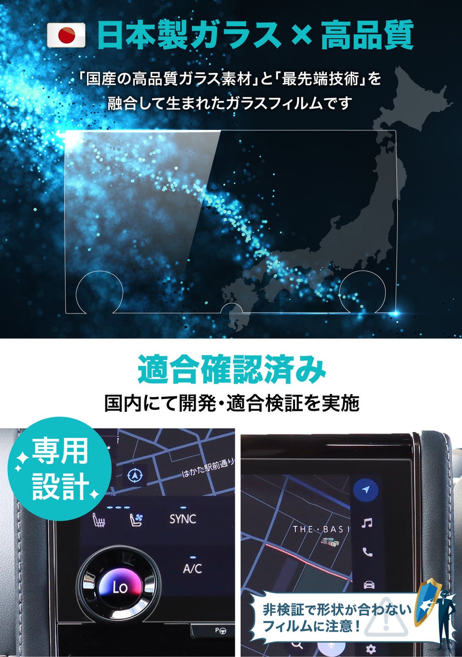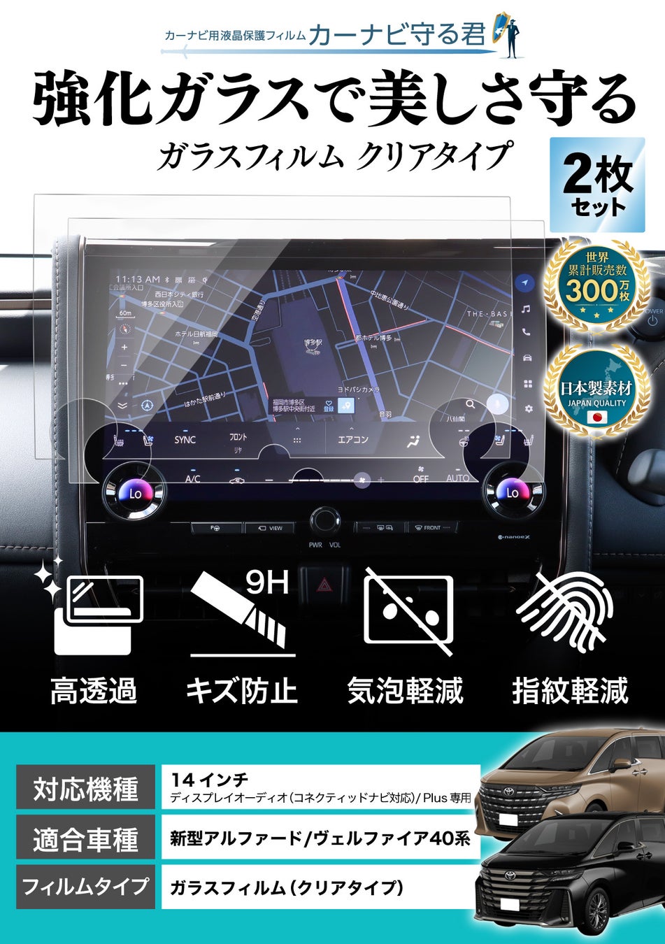 新しいトヨタの アルファード / ヴェルファイア 40系 14インチ ディスプレイオーディオ 専用ガラスフィルムです。貼りやすい固定用シール付きで、お得な2枚セット。カスタムパーツのお供に