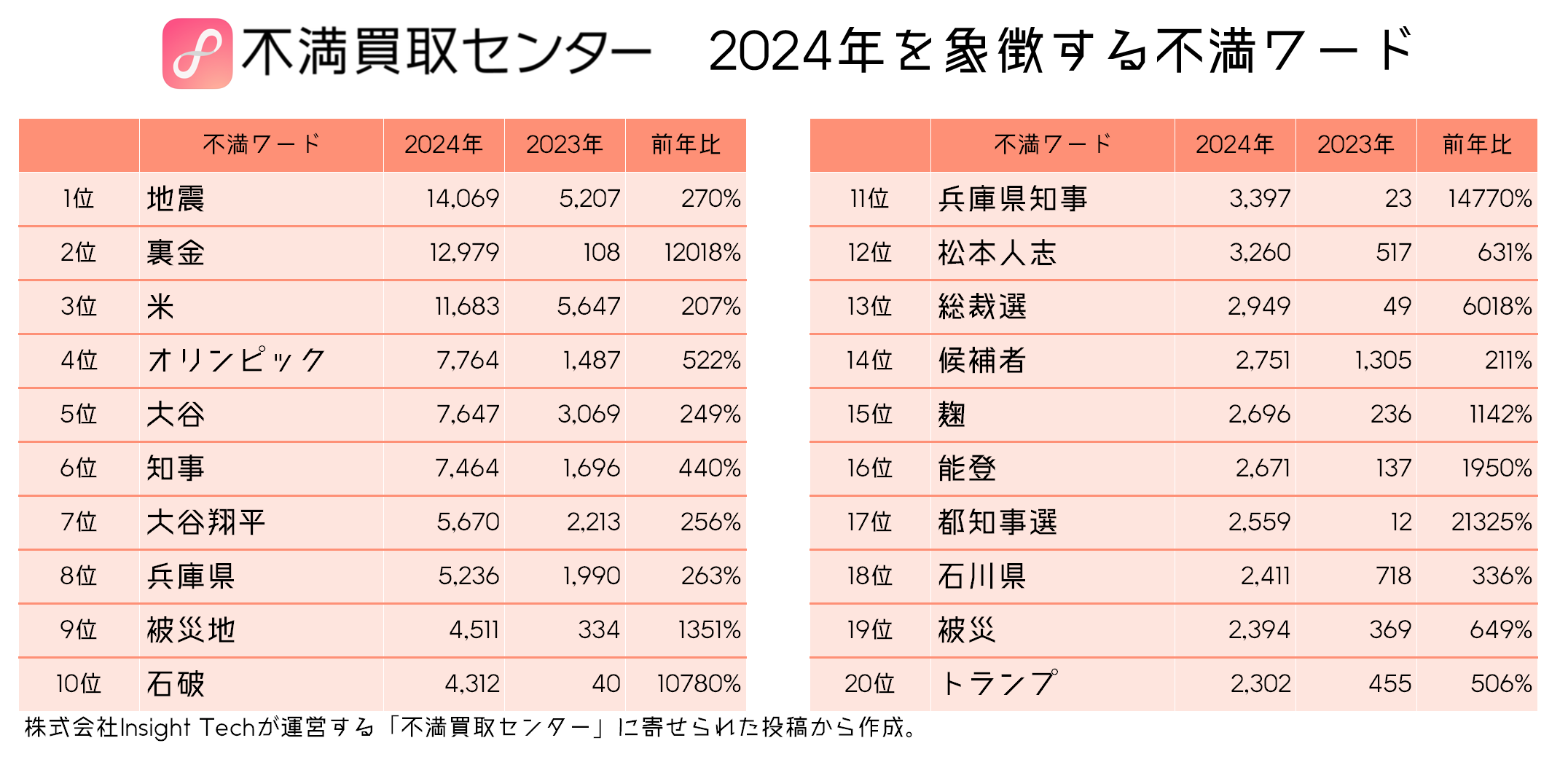 不満買取センターのInsight Tech、「2024年を象徴する不満ワード」を発表