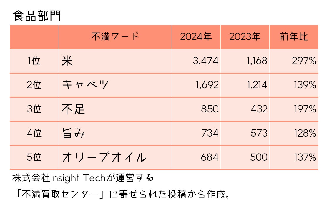 【食品部門:「米」が1位。「キャベツ」「不足」が続く】