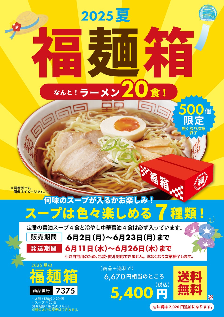 なお、「2025夏の福麺箱」は数量限定での提供となっており、なくなり次第販売終了となりますのでご了承ください。(数量限定品のため、リリース時に完売している場合があります。ご注意ください。)