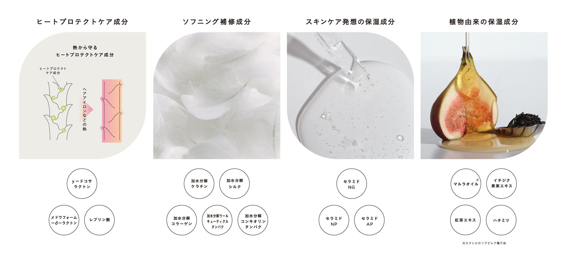 ヒートプロテクトケア成分(※2)で熱から髪を守り、傷んだキューティクルをケア。やわらかくサラリとした指通りのよい仕上がりに導きます。