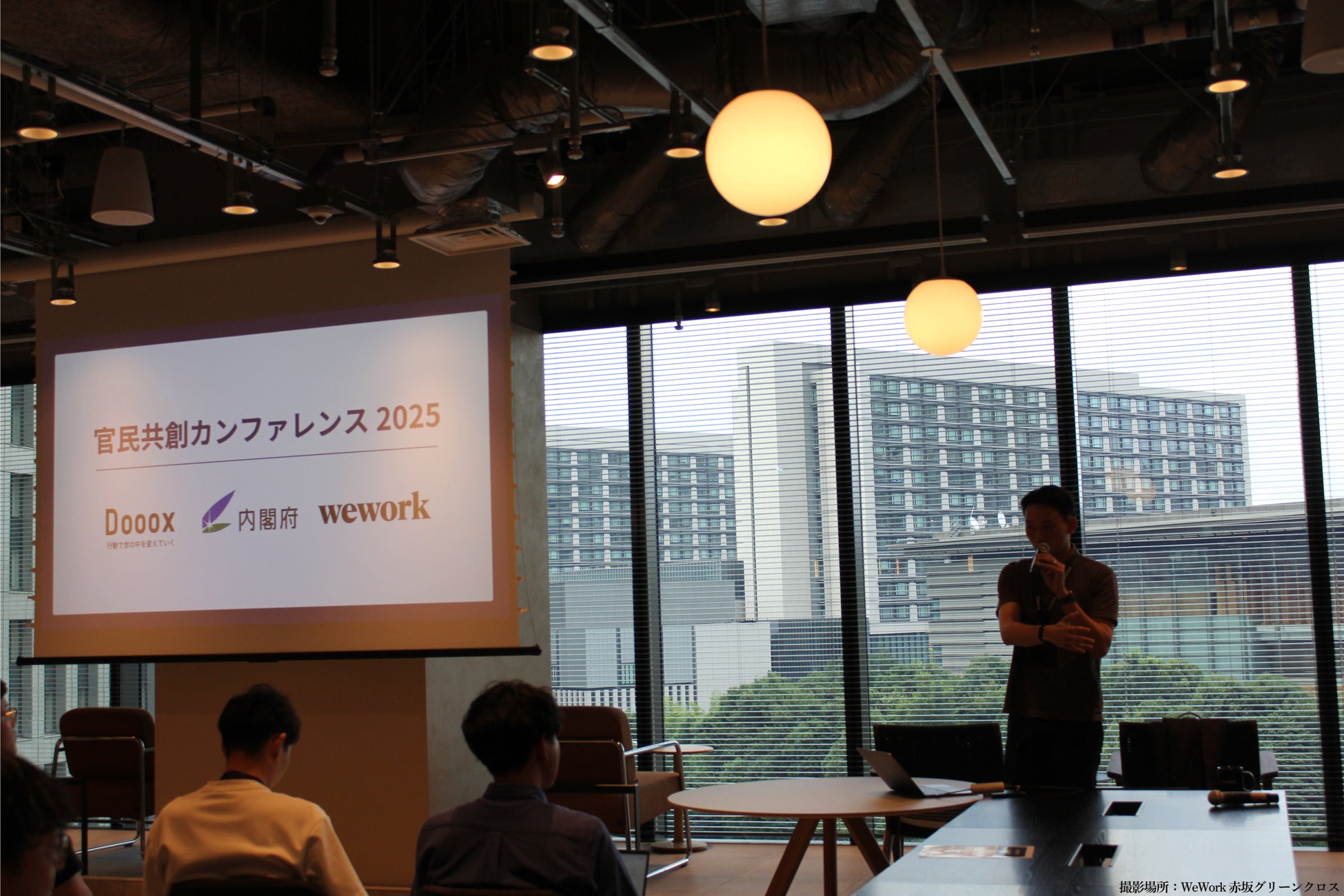 “行動で世の中を変えていく“を理念に掲げる株式会社Dooox(本社:東京都品川区、代表取締役:久保寺 亮介)は、内閣府とフレキシブルオフィスWeWorkを日本国内で展開するWWJ株式会社(本社:東京都港区、代表取締役社長 兼 CEO:熊谷 慶太郎、以下「WeWork Japan」)と連携し、2025年6月27日(金)にWeWork赤坂グリーンクロスにて「官民共創カンファレンス2025」を開催いたしました。