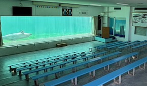ビーチランドで飼育するイルカたちの立会いの下、連携協定書にお互いがサインし、連携協定を締結します。