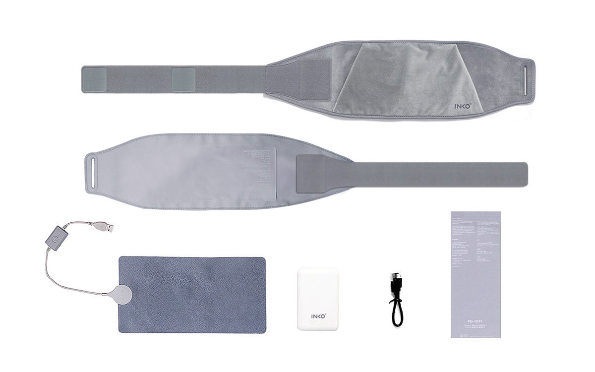 構成品:専用ベルト・ヒーティングマット・専用バッテリー(5,000mAh)・バッテリー充電用micro USBケーブル・取扱説明書および保証書