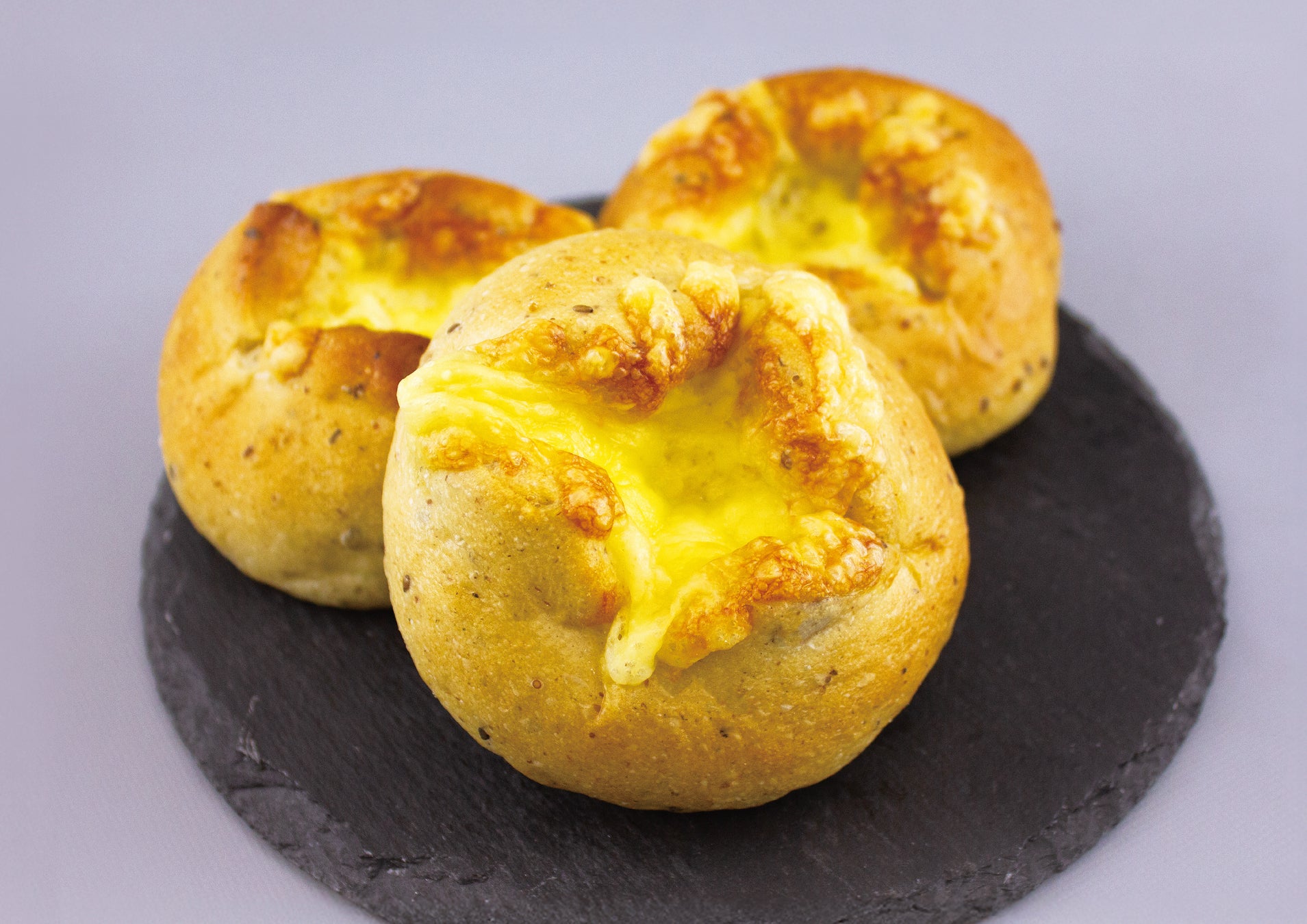 十穀生地にチーズクリームを包みチーズをトッピングし焼き上げました。十穀がたっぷり練り込まれた生地はもちっとした食感で、食べ進めていくごとにチーズの味わいが広がります。