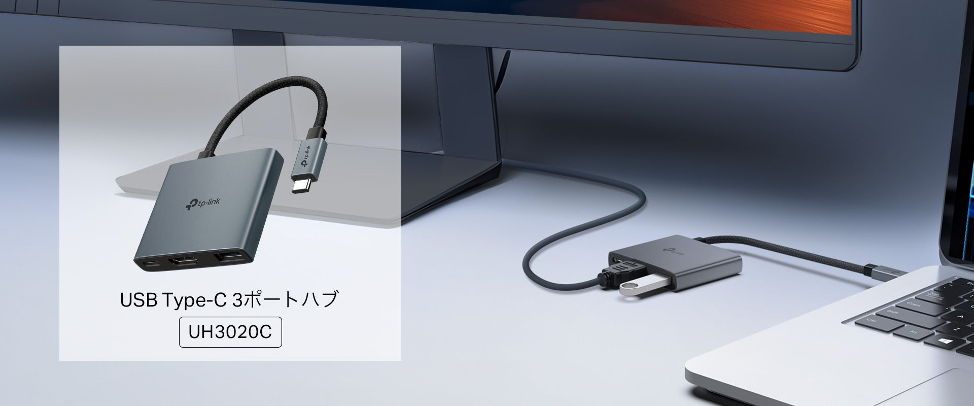 USB Type-C 3ポートハブ「UH3020C」製品ページ:https://www.tp-link.com/jp/home-networking/usb-c-hub-and-converter/uh3020c/