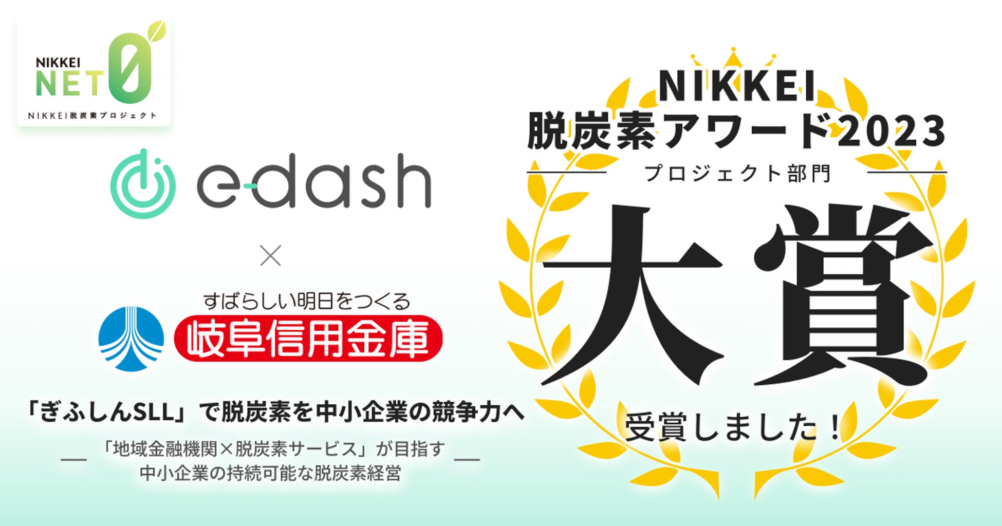 e-dashが岐阜信用金庫と共同で「NIKKEI脱炭素アワード2023年度」のプロジェクト部門にて大賞を受賞