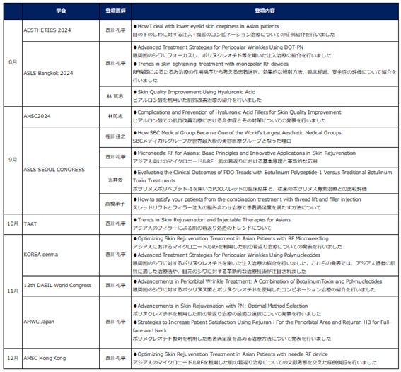 SBCメディカルグループホールディングス(米国カリフォルニア州、CEO:相川佳之)の連結子会社であるSBCメディカルグループが経営を支援する「湘南美容クリニック」に所属するドクターは、今年も世界中の国際学会において数多くの研究成果を発表し、美容医療業界の発展に寄与してまいりました。2024年を締めくくるにあたり、1年間の活動を振り返り、私たちの取り組みが医療分野にもたらした成果をご報告いたします。