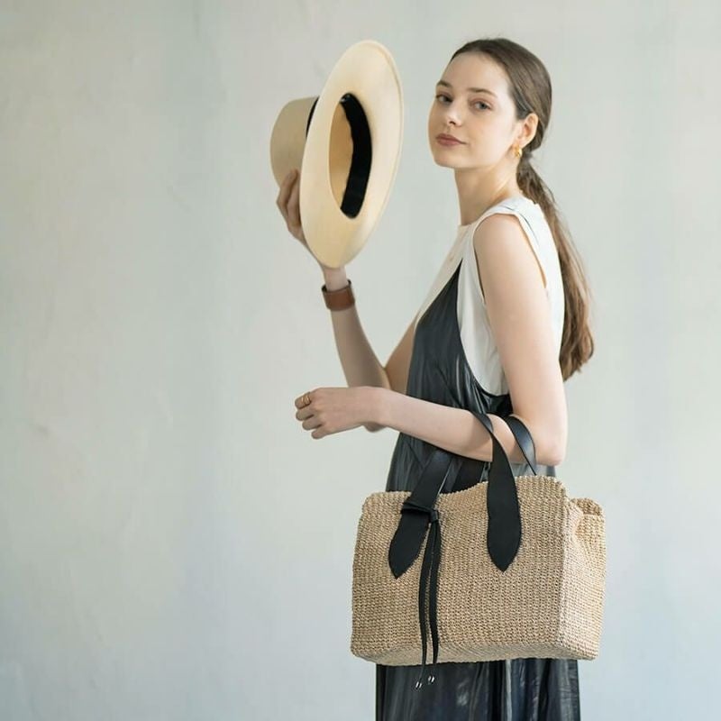 【2024S/S新作】軽やかな春の風に感じる大人の余裕。異素材MIXできれいめスタイルに華を添える、抜け感溢れるかごバッグ登場!